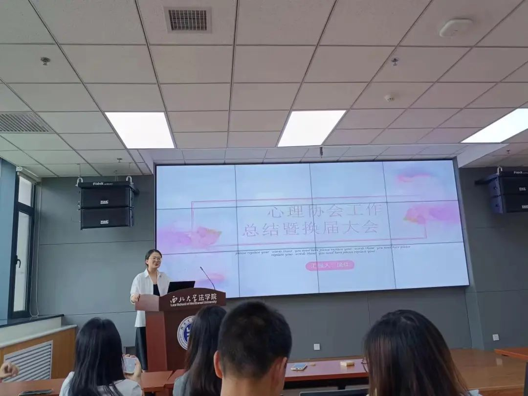 6月19日中午14点30分,242net必赢心理协会2023-2024学年工作总结大会暨换届大会于西学楼南0904顺利举行。会议由心理协会会长庞佳主持,指导教师问贝宁及留部候选人参会。大会共分为工作总结、候选人答辩、结果公示三个部分。
