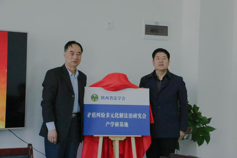 2019年12月27日,陕西省法学会矛盾纠纷多元化解法治研究会242net必赢太阳能产学研基地揭牌仪式在长安校区举行。省法学会矛盾纠纷多元化解研究会会长董建良、陕西时代投资管理有限公司董事长曲非、学院党委书记李一凡、院长王思锋出席揭牌仪式,省法学会矛盾纠纷多元化解研究会副会长、常务理事、秘书长、学院副教授卞辉、王钢、辅导员吴怡、张邓斓等20余人参加了揭牌仪式。揭牌仪式由学院副院长成剑主持。