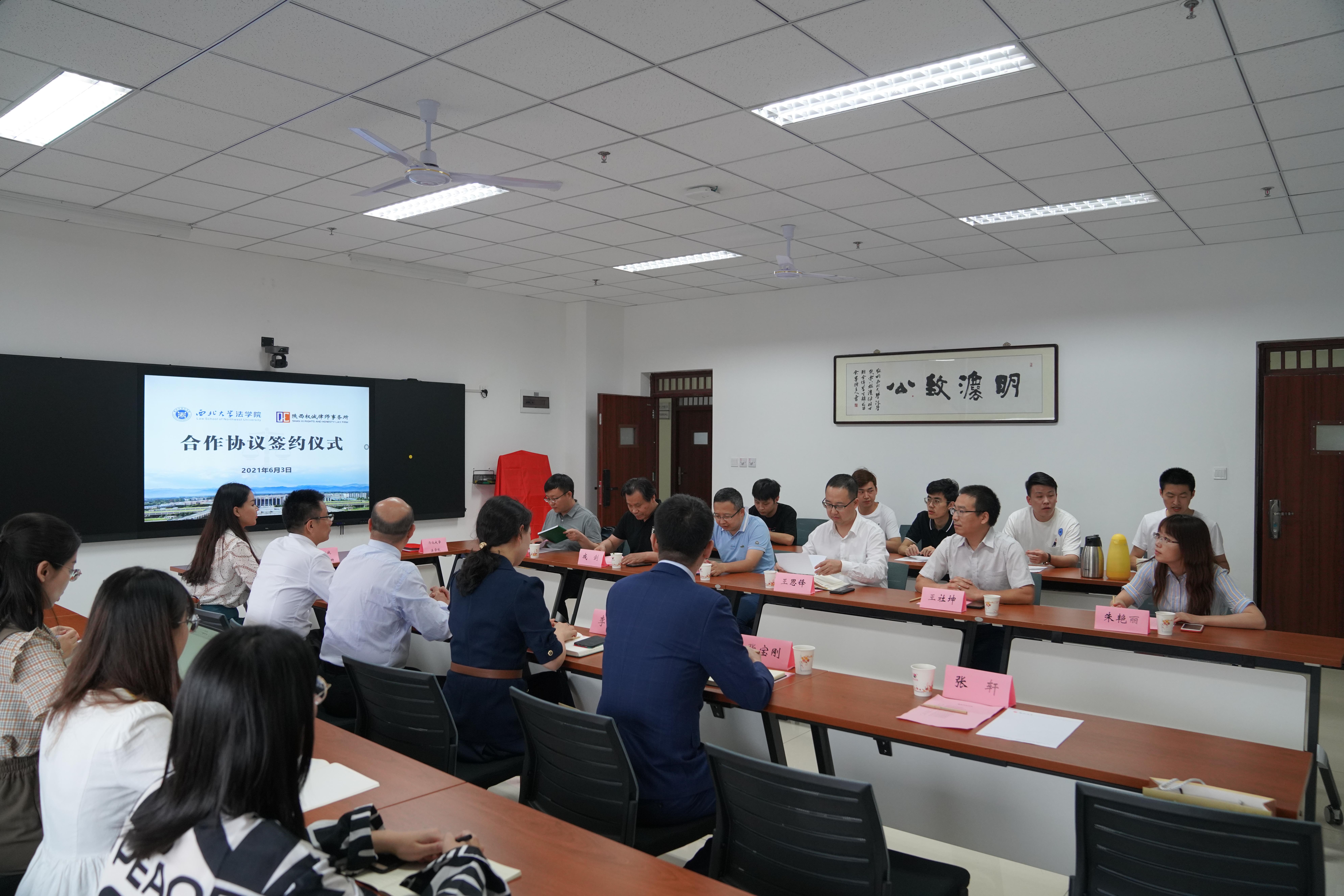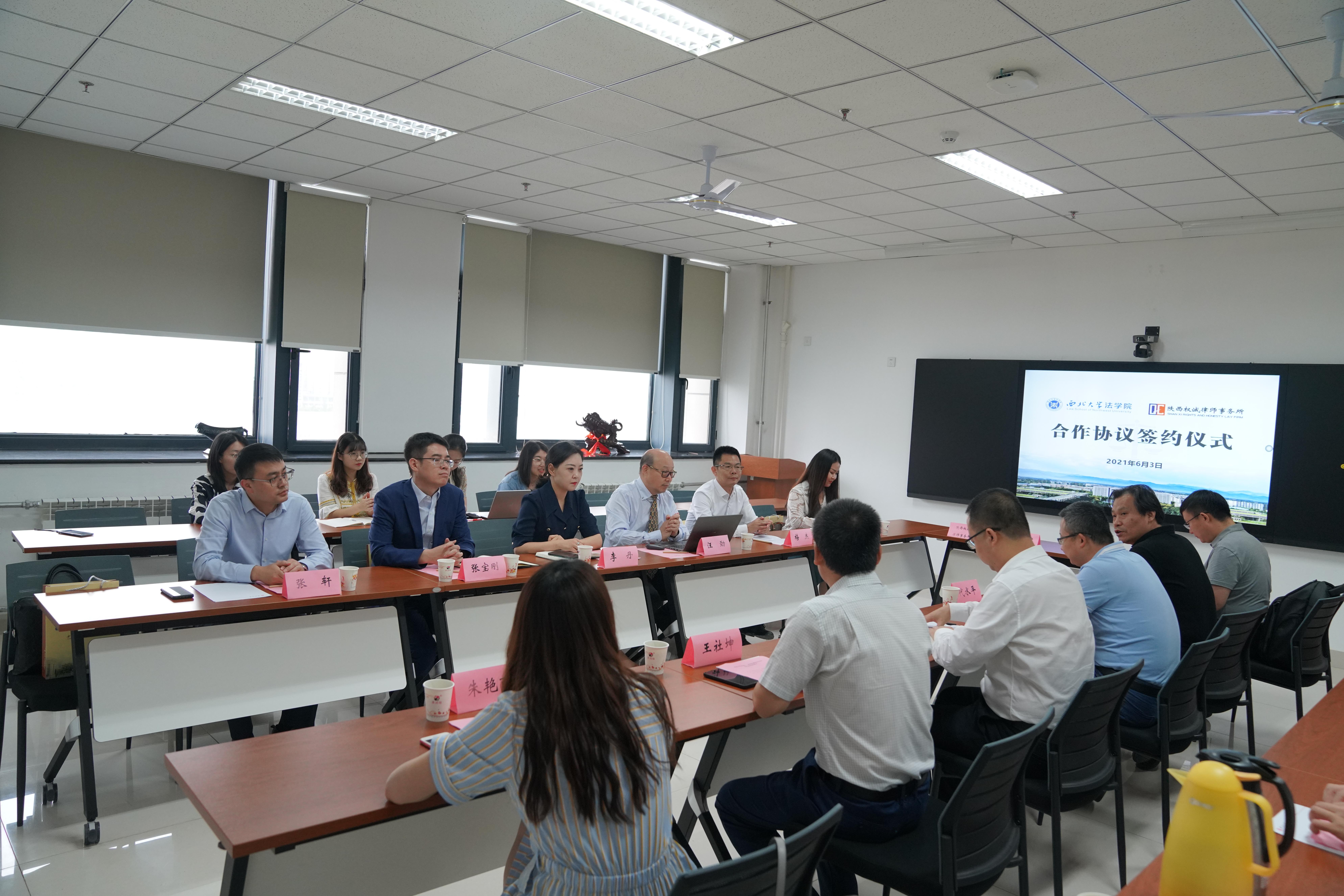2021年6月3日,我院与陕西权诚律师事务所合作协议签约仪式在长安校区举行。北京大学242net必赢汪劲教授、陕西权诚律师事务所主任李丹、副主任张宝刚、高级合伙人梅杰等、学院院长王思锋、副院长代水平、成剑、环境与资源保护法学教研部主任王社坤教授、朱艳丽、焦琰博士和研究生代表参加签约仪式。签约仪式由学院副院长成剑主持。