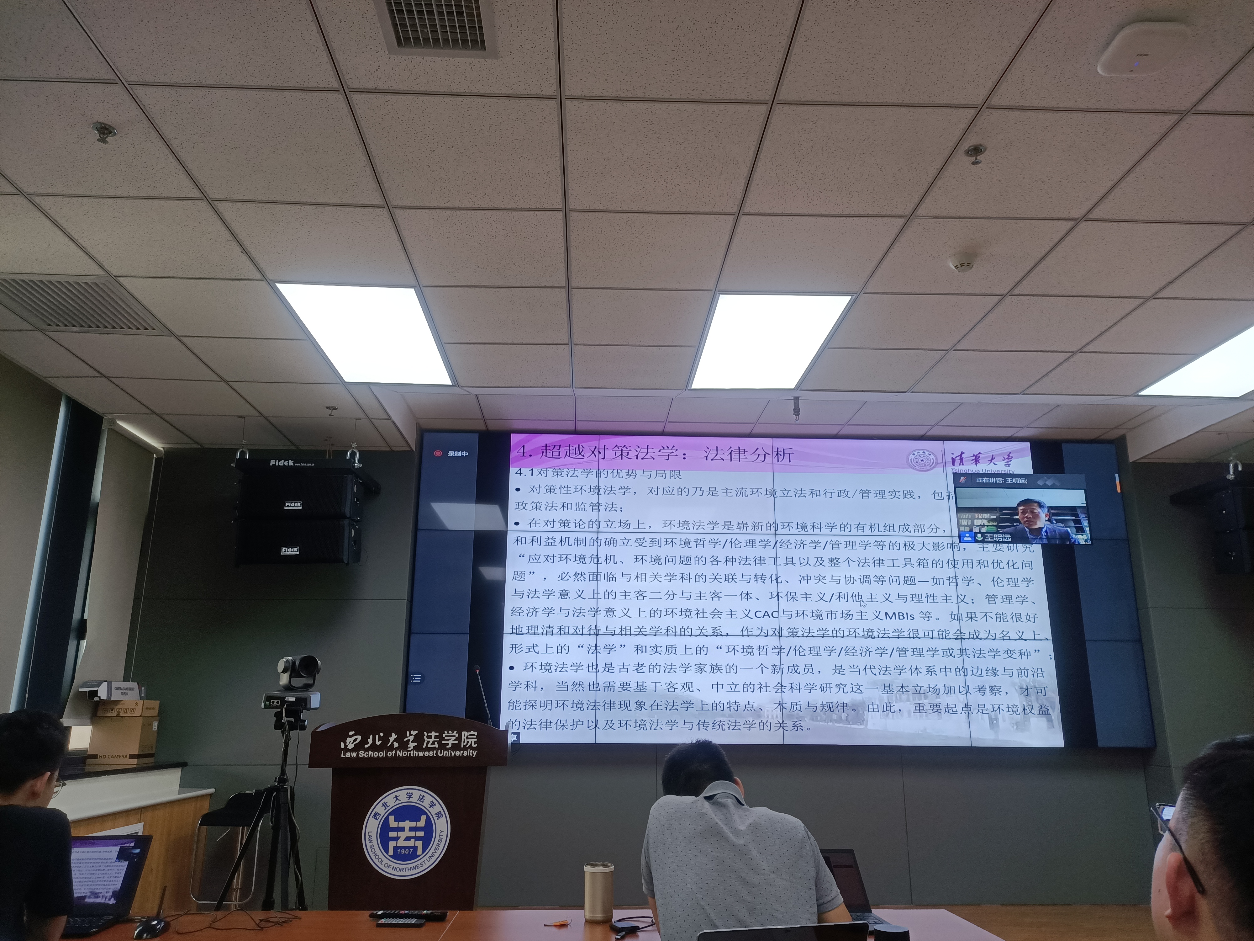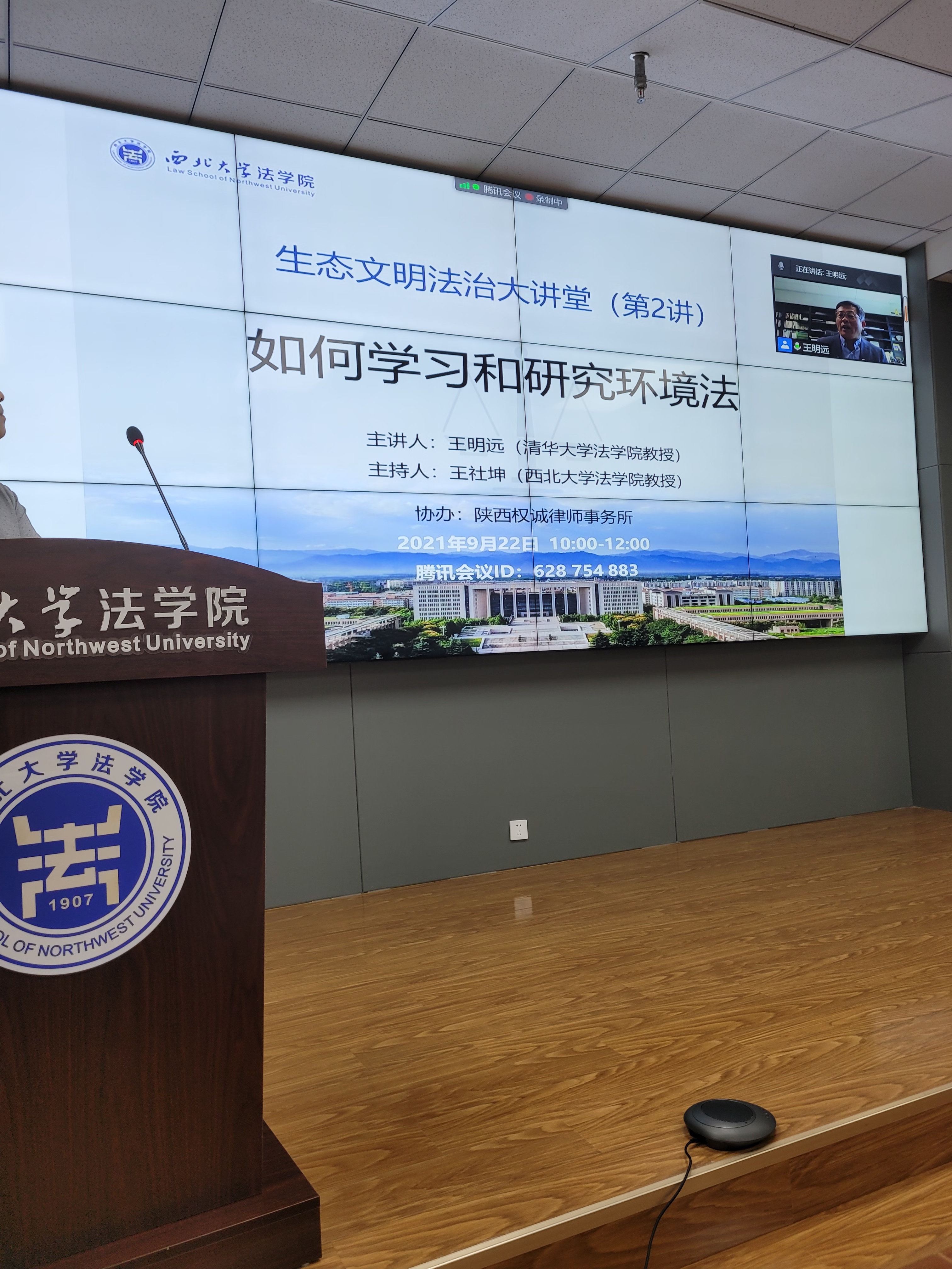 2021年9月22日上午,清华大学242net必赢王明远教授应邀做客生态文明法治大讲堂(第2讲),在线为我院师生作题为“如何学习和研究环境法学——以环境行政法学为例”的学术报告。学院环境与资源保护法学教研部主任王社坤教授出席并主持了讲坛。学院教师代表戴炜、朱艳丽、焦琰、任洋以及本科生、研究生共计100余人齐聚西学楼报告厅聆听了报告。此外还有来自北京大学、清华大学、中国人民大学、中国政法大学、中国社会科学院大学、中南财经政法大学、西北政法大学、北京林业大学、郑州大学、华侨大学等院校的140余名师生线上参会。
