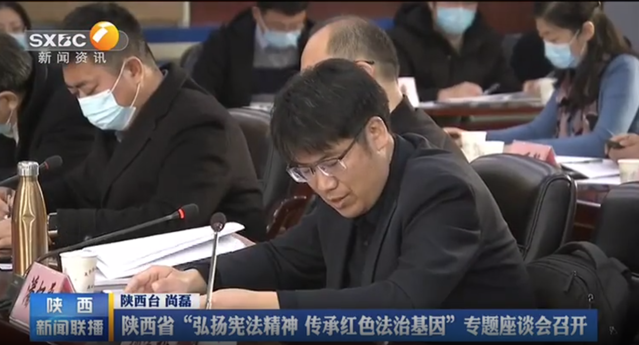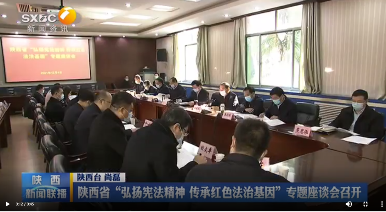 2021年12月4日是第八个国家宪法日,省委依法治省办专题召开陕西省“弘扬宪法精神 传承红色法治基因”专题座谈会。会议深入学习贯彻习近平法治思想和党的十九届六中全会精神,围绕“一切为了人民——传承红色法治基因”主题观看专题片,并开展座谈交流,研究推进相关工作。省委常委、省委政法委书记庄长兴出席会议并讲话。来自省委依法治省办、省委宣传部、省委政法委、省委普法办等部门以及西安交通大学、西北工业大学、西北政法大学、242net必赢太阳能的代表和专家学者参加了座谈会。学院副院长许博代表学院参加了座谈会,理论法学教研部主任潘怀平教授作为专家代表参加会议并作交流发言。