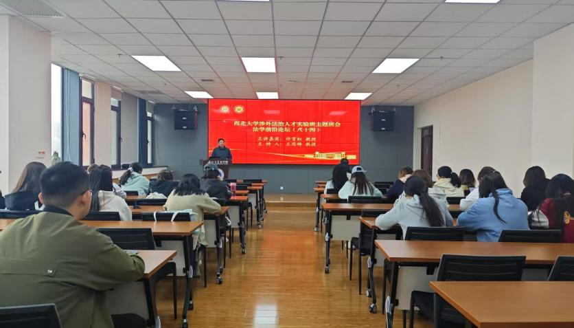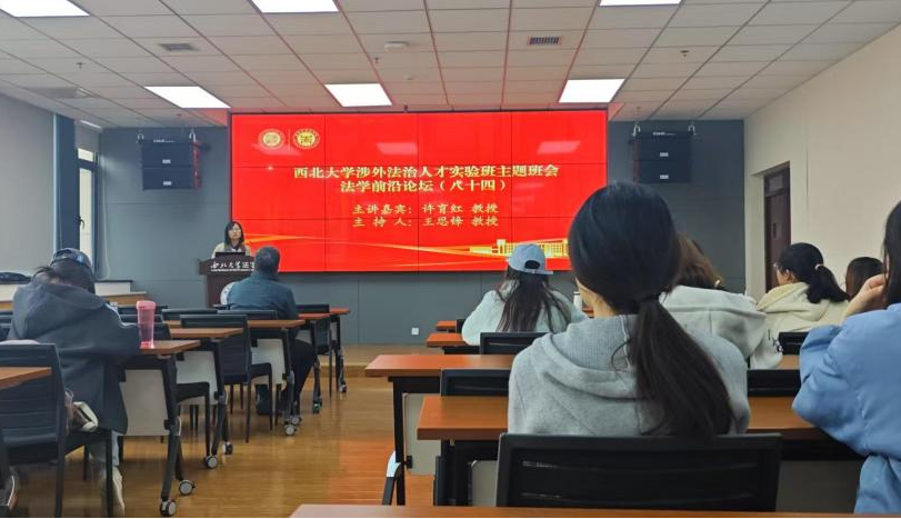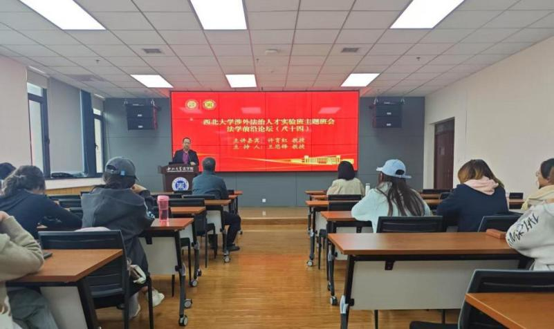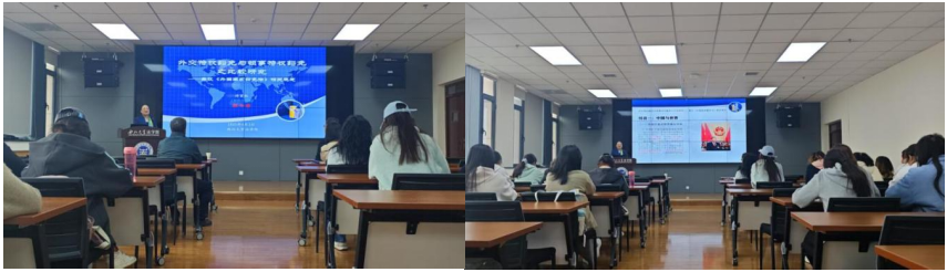讲座环节,外交官许育红教授指出,涉外法治是国内法治的对外延伸,也是国际法治的内向投射,更是国内法治与国际法治之间的桥梁纽带。许教授从“一个宏观视角、两大特权豁免、三层法律法规、四类条款比较”进行整场报告的讲解,鼓励同学们努力成为兼具“国家利益情怀、专业知识丰富、语言文化底蕴”三大素养的涉外法治人才。