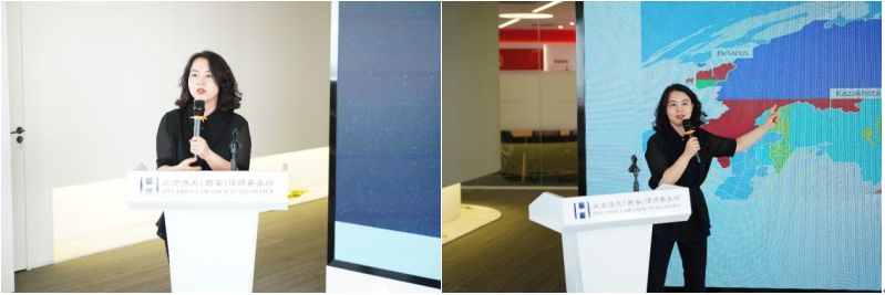 崔玲玲副院长在开幕致辞中阐述了本次活动的背景与意义。她指出,在百年变局加速演进、我国高水平对外开放持续推进的背景下,精通国际规则、具备跨文化沟通能力和实战经验的涉外法治人才稀缺。为满足国家推进高水平对外开放、加强涉外法治体系和能力建设的实际需要,我院于2024年开设法学(涉外法治人才实验班),面向“一带一路”建设,培养涉外法治人才。此次与浩天(西安)律所的合作,是我院创新涉外法治人才培养模式、深化产教融合的关键举措。她特别感谢浩天(西安)律所提供了宝贵的实务前沿阵地,使学生得以零距离感知行业脉动,并期待双方以此为契机,在课程共建、案例研究、实习基地建设乃至联合课题攻关等方面展开更系统、更深层次的合作,共同为服务国家重大战略需求输送栋梁之才。