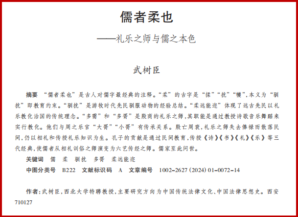法律文化研究院院长、特聘教授武树臣先生撰写的论文《儒者柔也