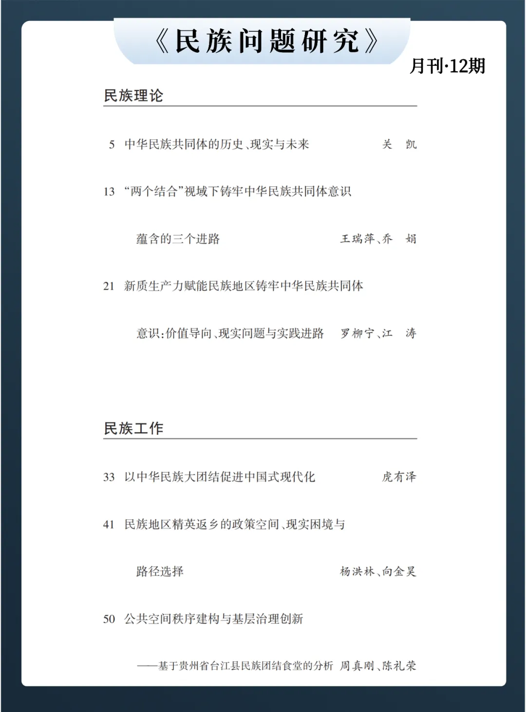 近日,我院虎有泽教授撰写的论文《以中华民族大团结促进中国式现代化》被《人大复印报刊资料(民族问题研究)》2024年第12期全文转载,该论文原发表于《西南民族大学学报》2024年第6期。